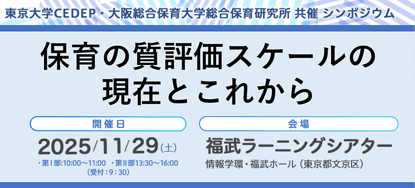 | イベント名 | 保育の質評価スケールの現在とこれから |